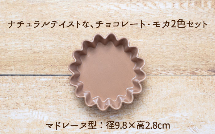 まるで焼菓子のような形の小皿・小鉢ナチュラルテイストな、チョコレート・モカの2色ペアセットでお届けします。