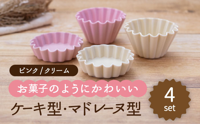 お菓子のようにかわいい食器セット 【美濃焼】ケーキ型・マドレーヌ型 2色4点セット(ピンク・クリーム)【ヤマ忠木股製陶】食器 プレート ボウル [MDB026]