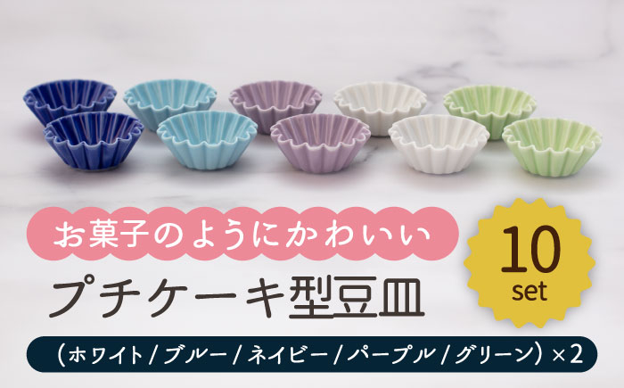 お菓子のようにかわいい豆皿 【美濃焼】プチケーキ型 豆皿 5色 10点 セット(ホワイト・ブルー・ネイビー・パープル・グリーン)【ヤマ忠木股製陶】食器 小皿 プレート [MDB028]