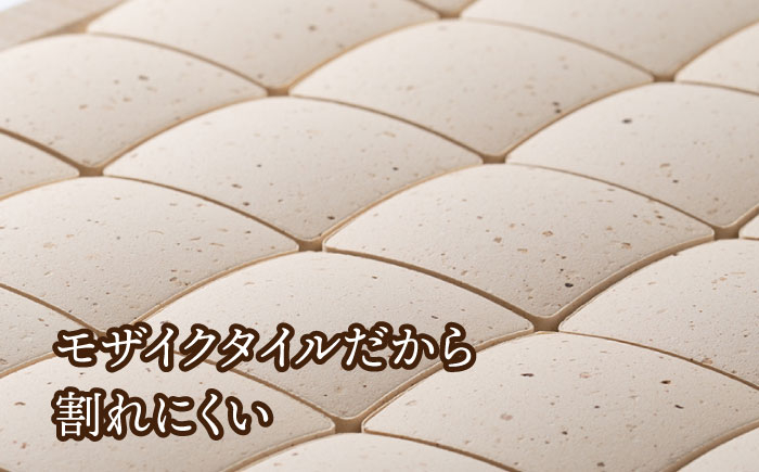 モザイクタイルにすることで割れるリスクを軽減。表面を球面状にすることで、足裏が心地よいです。