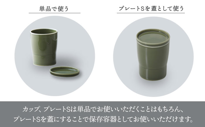 カップ、プレートSは単品でお使いいただくことはもちろん、プレートSを蓋にすることで保存容器としてお使いいただけます。お祝いの贈り物におすすめです。