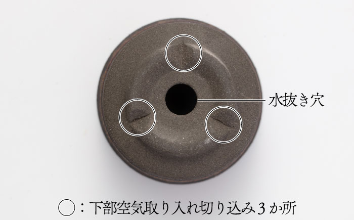 | 容量 | サイズ:径6.5×高5cm ※水抜き穴あり ※下部空気取り入れ切り込み3か所 【素材】 土物黒土 一点一点手作業で削り出しているため、器の形状に違いがあります。 また、釉薬の流れ方や窯変の出方に違いがあります。 ご了承の上お申し込みいただきますようお願いいたします。 【お申し込み前に必ずお読みください】 お届けする返礼品には個体差が生じる場合があります。 下部記載の「個体差について」、「破損・欠陥について」を必ずご一読のうえ、お申し込みください。 【色について】 商品写真はできる限り実物の色に近づけるよう徹底しておりますが、 お使いのモニター設定、お部屋の照明等により実際の商品と色味が異なる場合がございます。  |