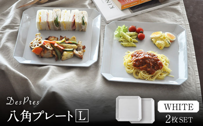 食卓をワンランクオシャレに 【美濃焼】DesPres-デプレ- 八角 プレートL WHITE 2枚セット【丸新製陶】 [MAM005]