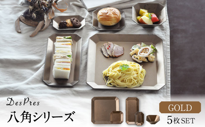 食卓をワンランクオシャレに 【美濃焼】DesPres-デプレ- 八角シリーズ GOLD 5点セット【丸新製陶】 [MAM015]