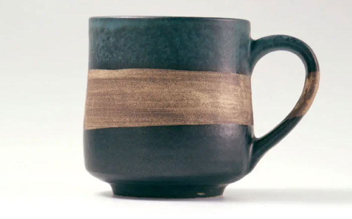落ち着いたカラーリングがマットな土味とマッチして、シックな仕上がりのマグカップ。