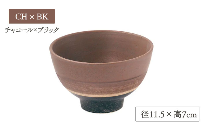落ち着いたカラーリングがマットな土味とマッチして、シックな仕上がりのご飯茶碗。