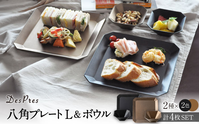 食卓をワンランクオシャレに 【美濃焼】DesPres-デプレ- 八角 プレートL&ボウル BLACK、GOLD 2セット【丸新製陶】 [MAM016]