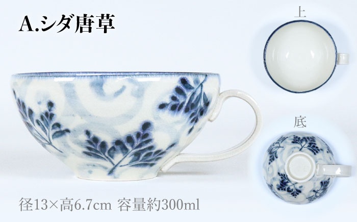 手描きの温かみと陶器の風合いが自然に溶け合う片手スープ鉢ペア 【美濃焼】<選べる デザイン>安南 手描き 片手スープ鉢 ペア (※5柄から2柄お選びください)【宗山窯】 食器 スープカップ ボウル [MBI035]