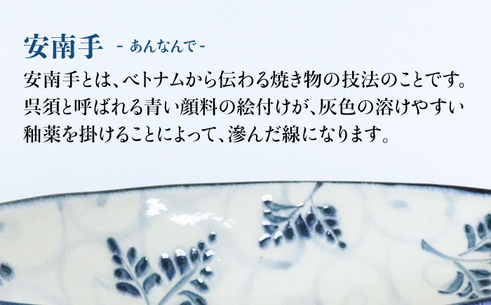 安南シリーズは、手描きの染付に貫入釉(釉と素地の収縮率の差により、焼成後の冷却時に生じた釉のひび模様のこと)を施す事でがやわらかな風合いが特徴の商品です。