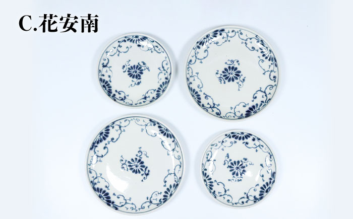 手描きの温かみと陶器の風合いが自然に溶け合うプレートセット 【美濃焼】<選べる デザイン>安南 手描き プレートM&S 4枚セット (※5柄から2柄お選びください)【宗山窯】 食器 皿 大皿 [MBI040]