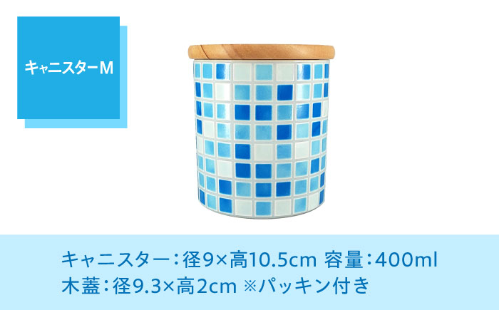 レトロなモザイクタイル風 【美濃焼】TILE-Style キャニスター M/Lセット ブルー【青木転写】キッチン雑貨 保存容器 ふた付き容器 [MFY003]