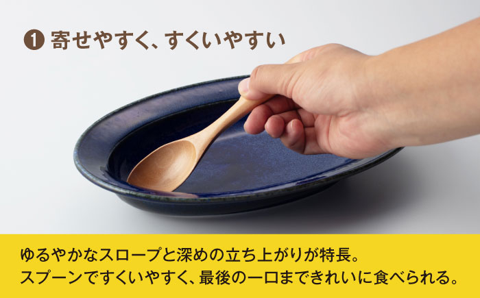 ゆるやかなスロープ状の底面や、縁の立ち上がりなどの特長があることで、カレーを最後までおいしくきれいに食べることができます。