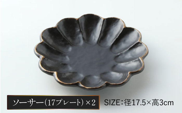 【美濃焼】リンカ金環黒練 大皿&カップ ペアセット【カネコ小…