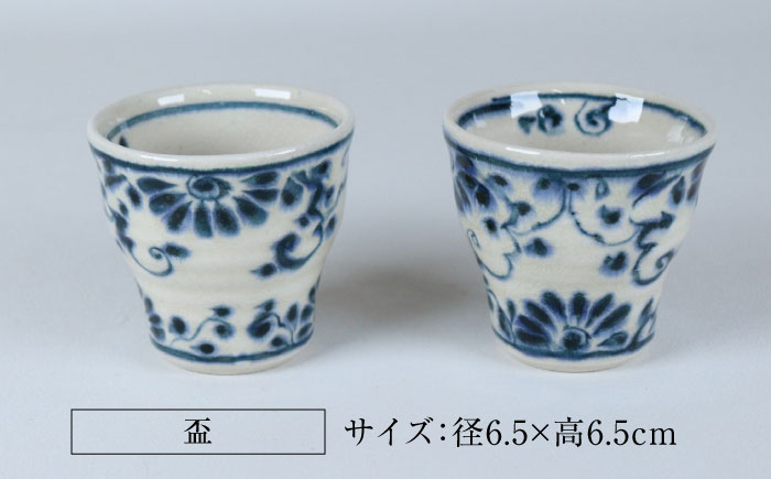 食器 片口 ぐい呑み カップ コップ 日本酒 晩酌 ペア 夫婦 カップル ブルー 青 花柄 植物柄 陶器 レンジ対応 食洗機対応 送料無料