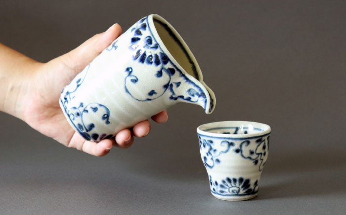 盃は持ちやすく、手描きの藍呉須のやわらかな風合いがお酒をいっそうおいしく感じさせてくれます。