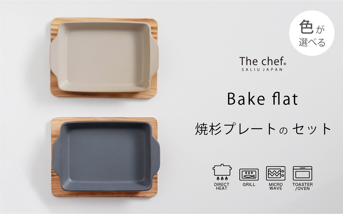 メインディッシュからデザートまで。簡単美味しい極上料理。 【美濃焼】The chef ベイクディッシュSフラット(蓋なし)&焼杉プレートセット 選べるカラー【株式会社ロロ】 [MBZ045]