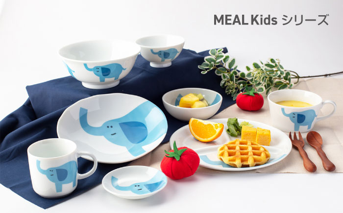 飲み物、おかず、カレーや麺類まで幅広く使える3点セットです。 【美濃焼】MEAL Kids ゾウ 麺鉢 カレー皿 マグカップセット【大東亜窯業】 [MAG059]