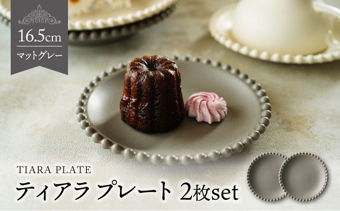 かわいいデコレーション食器 【美濃焼】ティアラ プレート 16cm マットグレー 2枚セット【Primitive陶舎花*花】 [MFZ004]