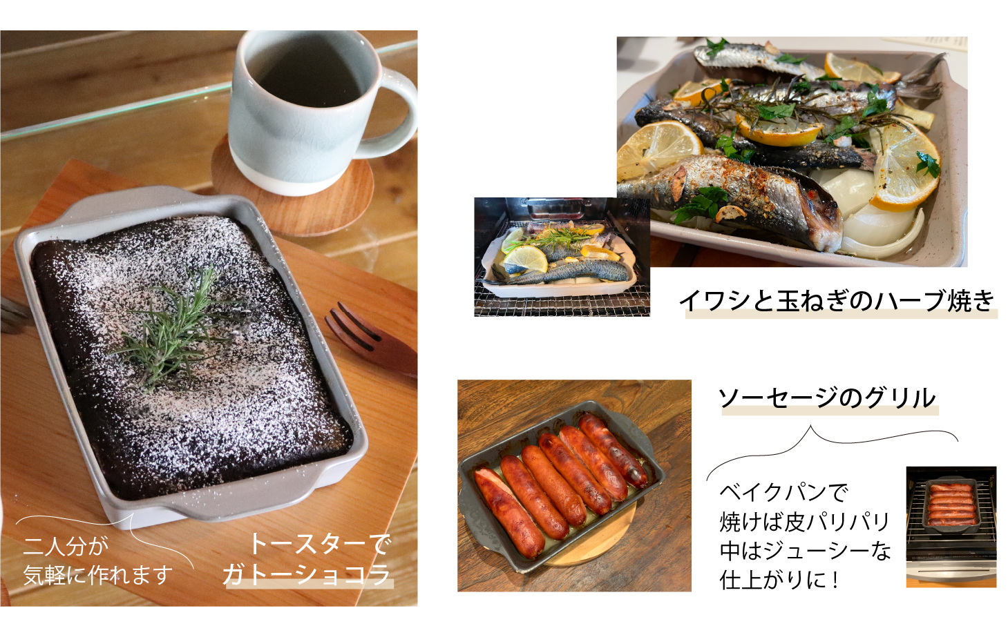 一般的な魚焼きグリルに2台並べて使用できるので、メインディッシュとデザートの同時調理も可能です。