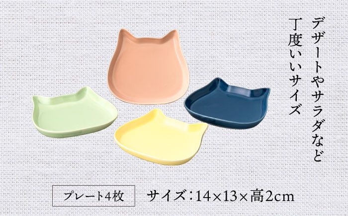 家庭の食卓にほっこりかわいいアクセントになります 【美濃焼】キャットプレート 4枚組(パステルカラー)【陶友 長江商店】食器 小皿 プレート [MCO022]