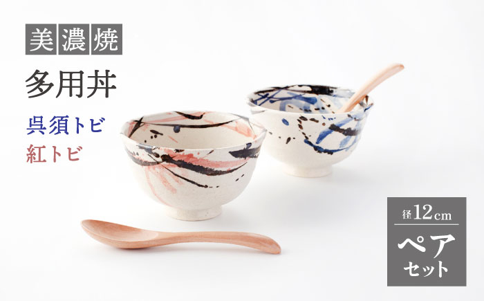 【美濃焼】多用丼 ペアセット 呉須トビ/紅トビ【好山窯】食器 ご飯 麺鉢 [MFU003]