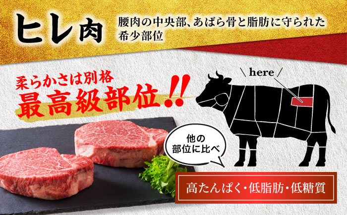 スジが少なく柔らかな赤身と繊細な霜降りが特徴のヒレ肉は、1頭の牛からとれる量が少なく、非常に希少な部位。