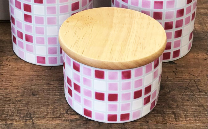 レトロなモザイクタイル風 【美濃焼】TILE-Style キャニスター S/Mセット ピンク【青木転写】キッチン雑貨 保存容器 ふた付き容器 [MFY012]