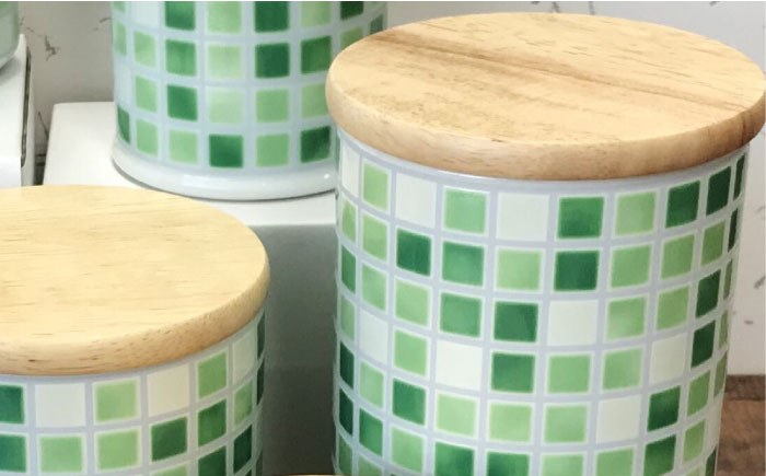 レトロなモザイクタイル風 【美濃焼】TILE-Style キャニスター M/Lセット グリーン【青木転写】キッチン雑貨 保存容器 ふた付き容器 [MFY017]