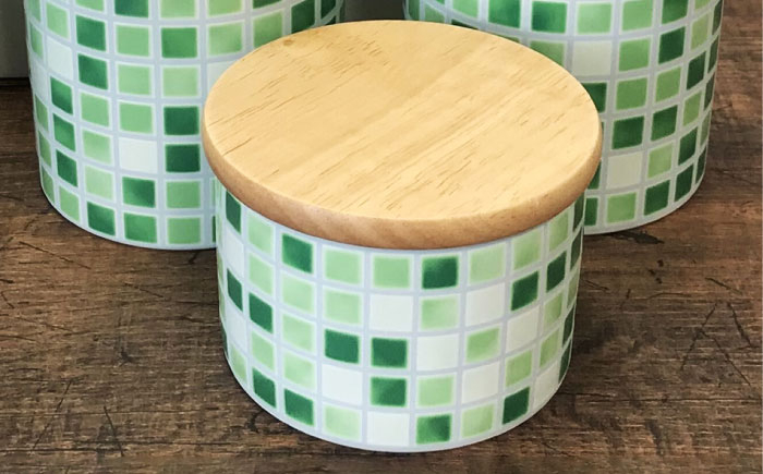 レトロなモザイクタイル風 【美濃焼】TILE-Style キャニスター S/M/Lセット グリーン【青木転写】キッチン雑貨 保存容器 ふた付き容器 [MFY019]