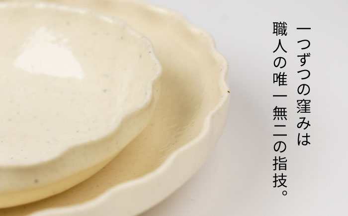 皿の縁の部分を職人がハンドクラフトで一つずつ丁寧に窪みをつけた一品。