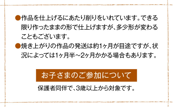 作った作品には乾燥や焼成によるキレや破損の可能性もあります。