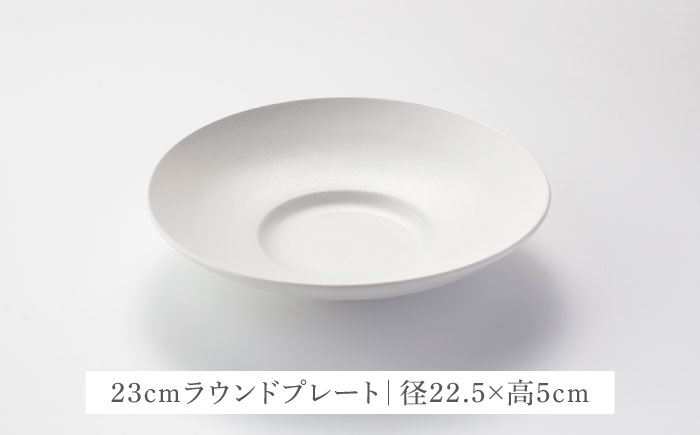 ふんわりと柔らかな印象の器 【美濃焼】クルバ ラウンドプレート 23cm ペアセット アッシュホワイト【一洋陶園】 食器 お皿 深皿 [MFQ014]