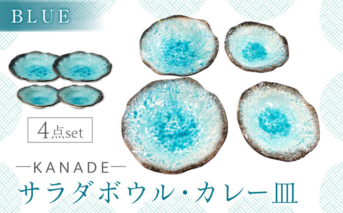 食卓を彩る、とっておきの和食器 【美濃焼】KANADE サラダボウル・カレー皿 ブルー ペア 4点セット 【丸利玉樹利喜蔵商店】 食器 お皿 プレート [MCC091]