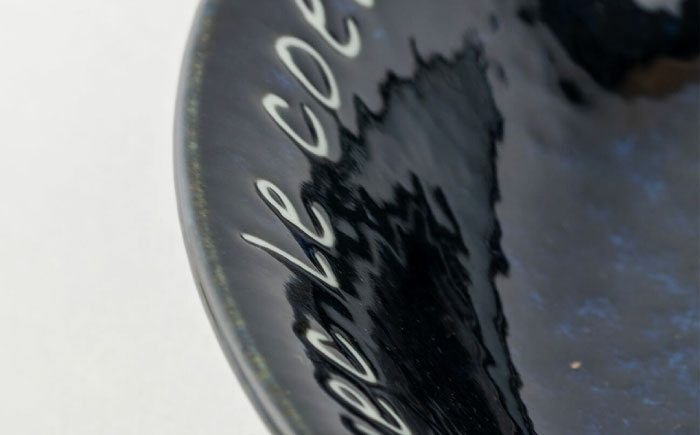 カラーは温かみのあるホワイトと、濃淡の美しいブルーの2色、そして文字をデザインに取り入れた、こだわりの器です。
