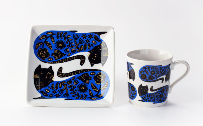 食器 皿 お皿 角皿 四角皿 小皿 プレート マグカップ マグ モーニング ペア 新居 カップル 夫婦 猫 ネコ ねこ ブルー ネイビー かわいい デザイン 贈り物 ギフト プレゼント 送料無料