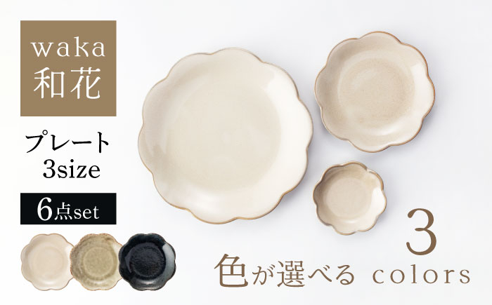 どんな料理にも合わせやすいデザインと色合いが魅力のプレートセット 【美濃焼】waka -和花- プレート3サイズ 色が選べる 6点セット【ヤマ吾陶器】花型 プレート 皿 [MCE023]