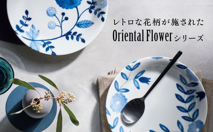 藍色が爽やかな、和の中皿セット 【美濃焼】Oriental Flower ペアディナープレート【株式会社二幸】中皿 レトロ 和食器 [MCZ107]