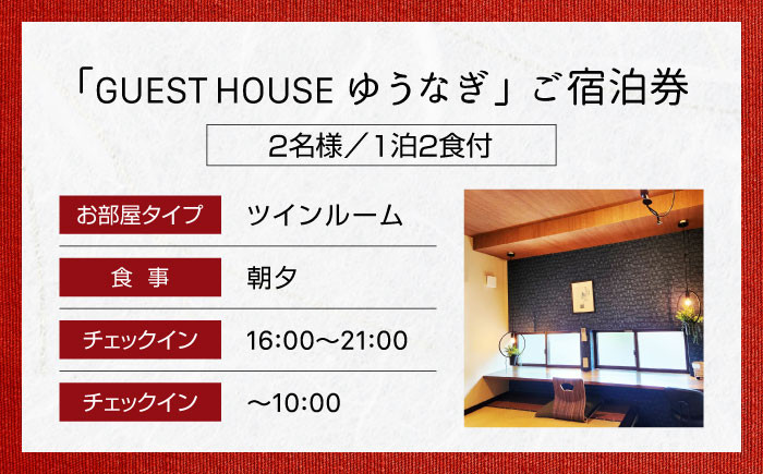日常の喧騒から離れ、「ただいま」と帰ってきたような場所と時間を ゲストハウスゆうなぎ ご宿泊券 2名様 1泊2食付 ツインルーム 【ゲストハウス ゆうなぎ】 宿泊 朝食 夕食 インター近く [MGN010]