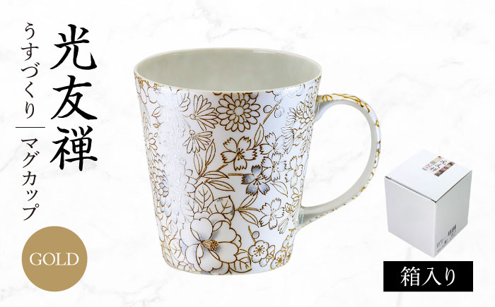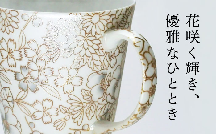 花咲く輝き、優雅なひととき 【美濃焼】光友禅 うすづくり マグカップ ゴールド【山勝美濃陶苑】マグ 花柄 エレガント(HYM-3053D) [MEC049]