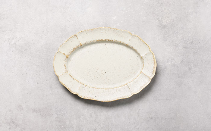 【美濃焼】Rin花 24cmオーバルプレート2点セット(フォンセ×エクリュ)…13,000 円 渋くてかわいいオーバルプレート - 常温便