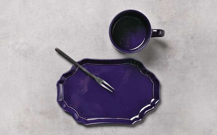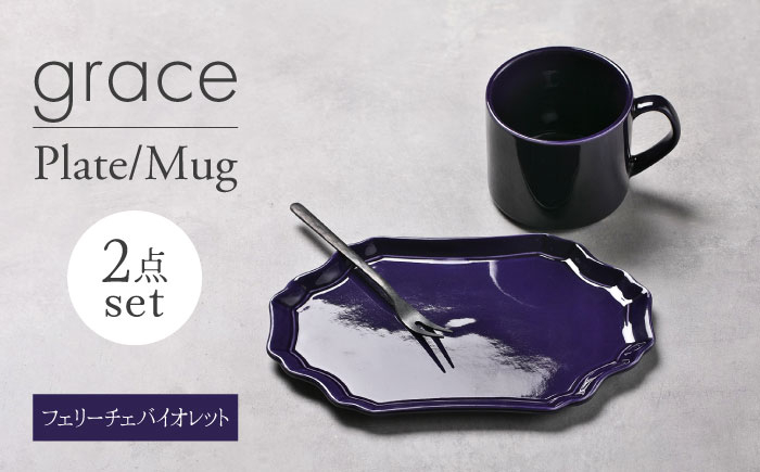 エレガントで優美なティータイムセット 【美濃焼】grace プレート・マグカップセット(フェリーチェバイオレット)【Felice-フェリーチェ-藤田陶器】 [MBX094]