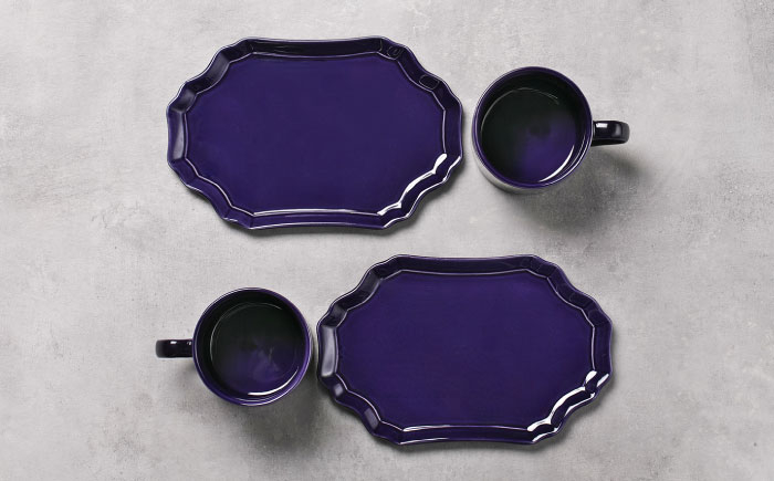 エレガントで優美なティータイムセット 【美濃焼】grace プレート・マグカップ4点セット(フェリーチェバイオレット)【Felice-フェリーチェ-藤田陶器】 [MBX096]