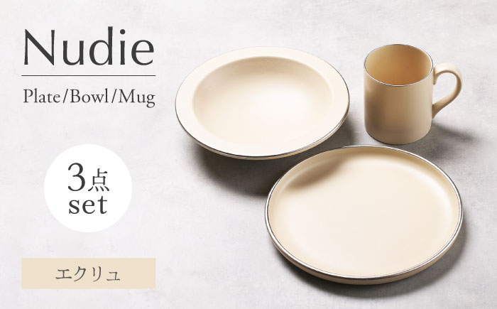 アンティーク紫陽花の色を纏わせた色っぽいNudieシリーズ。 【美濃焼】Nudie プレート・ボウル・マグカップ3点セット(エクリュ)【Felice-フェリーチェ-藤田陶器】 [MBX101]