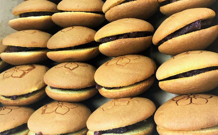 自家製の窯焼きどら焼き生地に北海道十勝産小豆の粒あんをサンド!