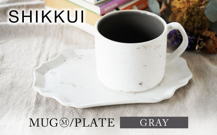 漆喰の壁をイメージしたうつわ。筆で一つ一つ手作業しています。 【美濃焼】SHIKKUI マグM/プレートセット グレー【marushin-pottery 丸新製陶】 [MAM102]