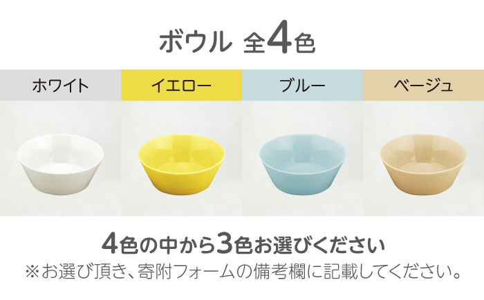 プレート、ボウル、それぞれお好きなカラーを3点ずつお選びください。