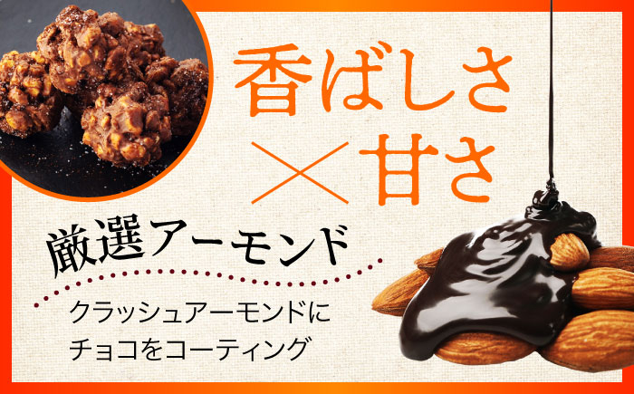 厳選されたアーモンドを贅沢にチョコレートで包んだ、香ばしさと甘さが絶妙に調和。