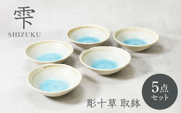 高級感を演出してくれる、おしゃれな和食器 【美濃焼】雫 しずく 彫十草 取鉢 5枚セット【カネ定製陶】 [MEI093]