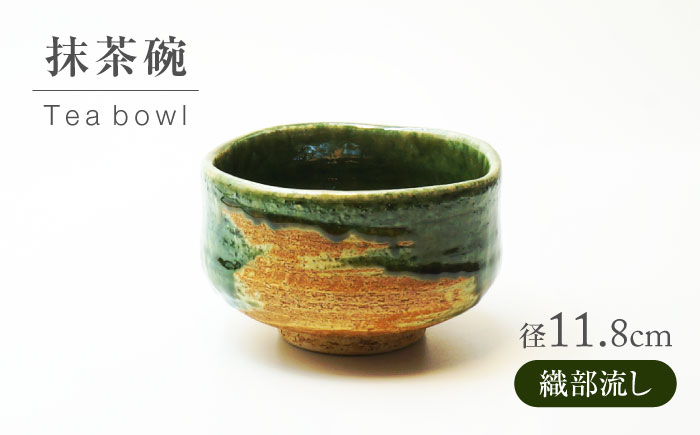 和モダンな、伝統的な織部釉の抹茶碗 【美濃焼】織部流し 抹茶碗【不動窯】食器 うつわ 茶道 [MAR061]