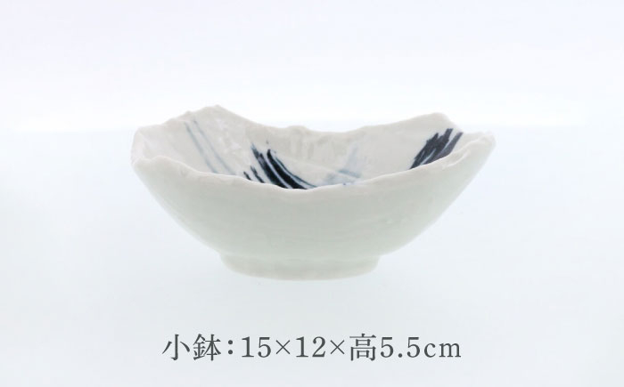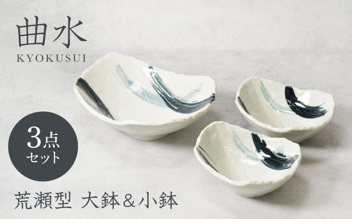 料理が映える、白と藍の上品な大鉢と小鉢のセット 【美濃焼】曲水 きょくすい 荒瀬型 大鉢 1点 & 小鉢 2点 合計3点セット【カネ定製陶】 [MEI149]